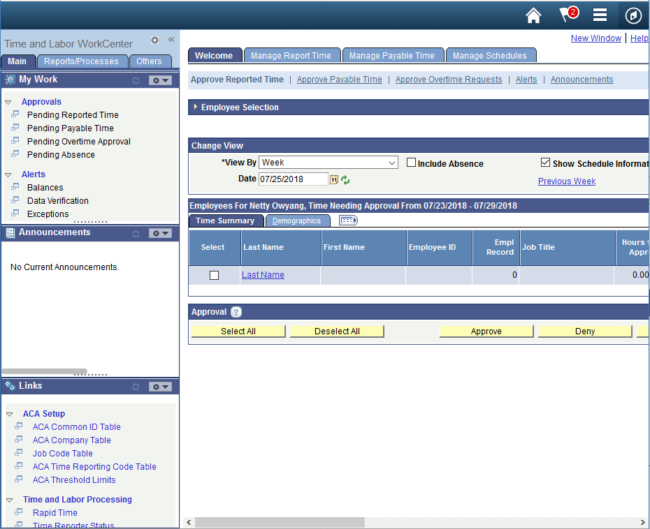 Navigation Collections are a hierarchy of links that can be surfaced in a side panel. Users can click on links in the left side (master) panel to navigate to different locations in PeopleSoft in the main (detail) panel while continuing to see the links in the left side panel. Navigation Collections that are displayed in the Classic PeopleSoft interface can have a hierarchy of links that are several levels deep but in the Fluid interface only two levels of the hierarchy will show (group and link). Navigation Collection configuration is in the same place it was in Classic: PeopleTools > Portal > Portal Utilities > Navigation Collections.