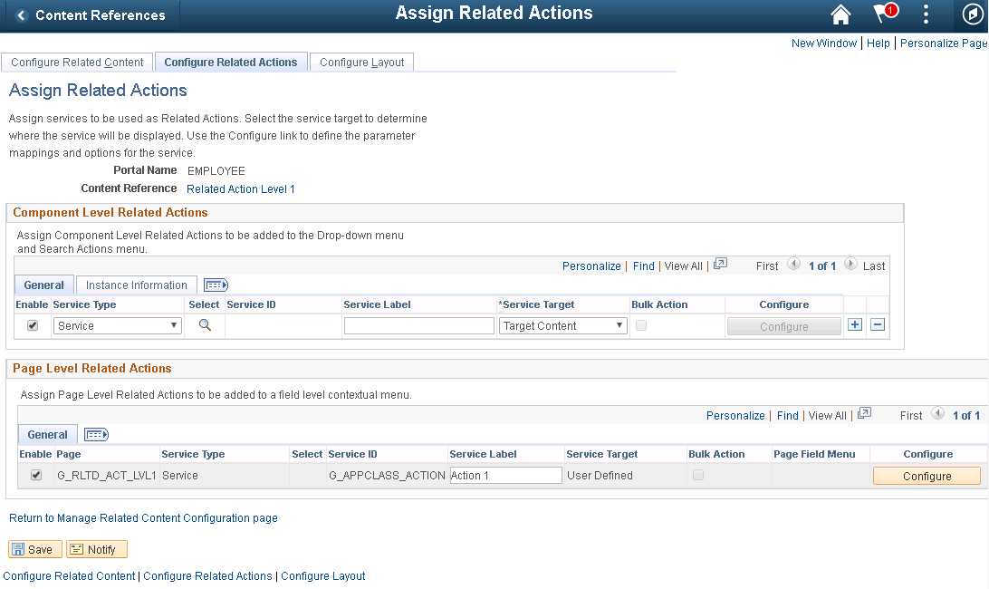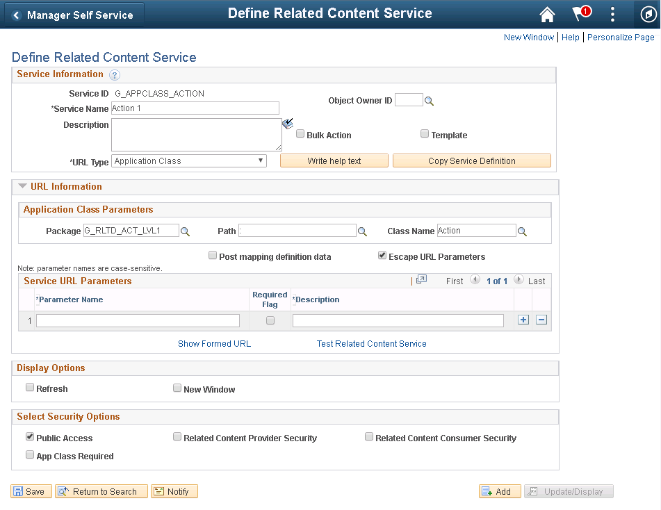 • Navigate back to PeopleTools > Portal > Related Content Service > Manage Related Content Service