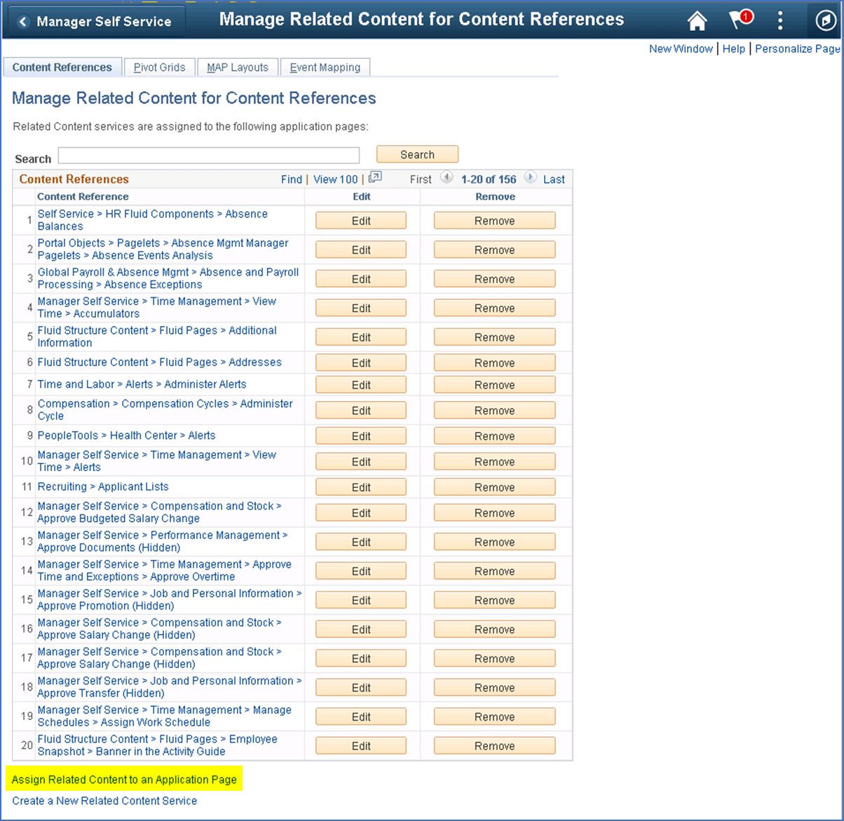 • Navigate to PeopleTools > Portal > Related Content Service > Manage Related Content Service