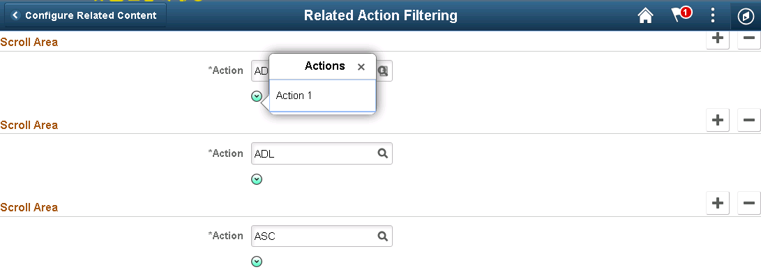 Related Content/Actions are used throughout Oracle’s delivered PeopleSoft applications to show related information and actions that can be taken for a person or transaction. Your organization may have specific requirements for adding additional Related Content or Actions or hiding Related Content or Actions based on specific criteria. As of PeopleTools 8.56, Related Service Filters were deprecated and you must use Security Configuration Authorizations to hide Related Content/Actions. This article