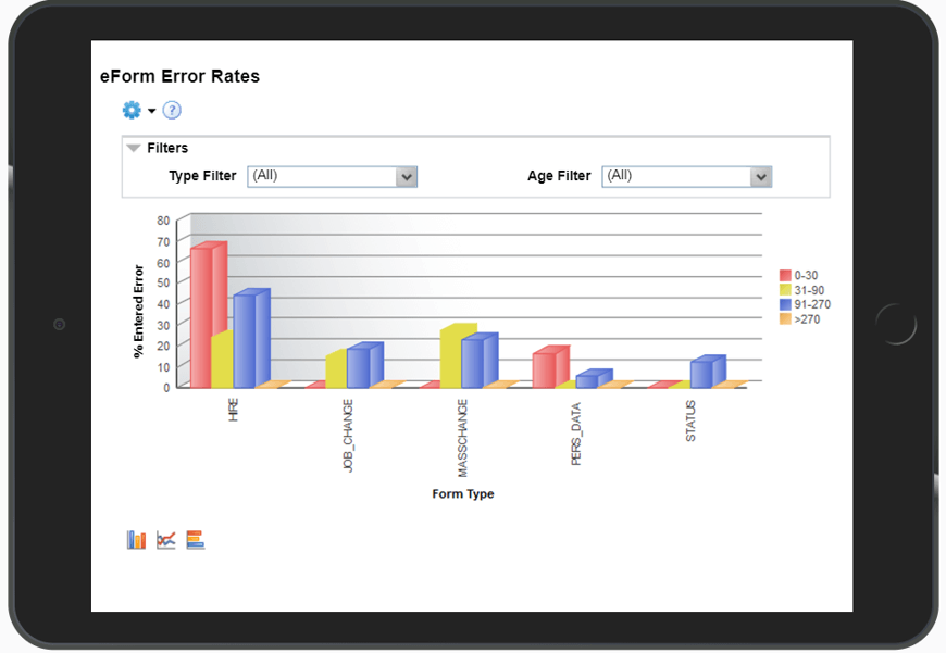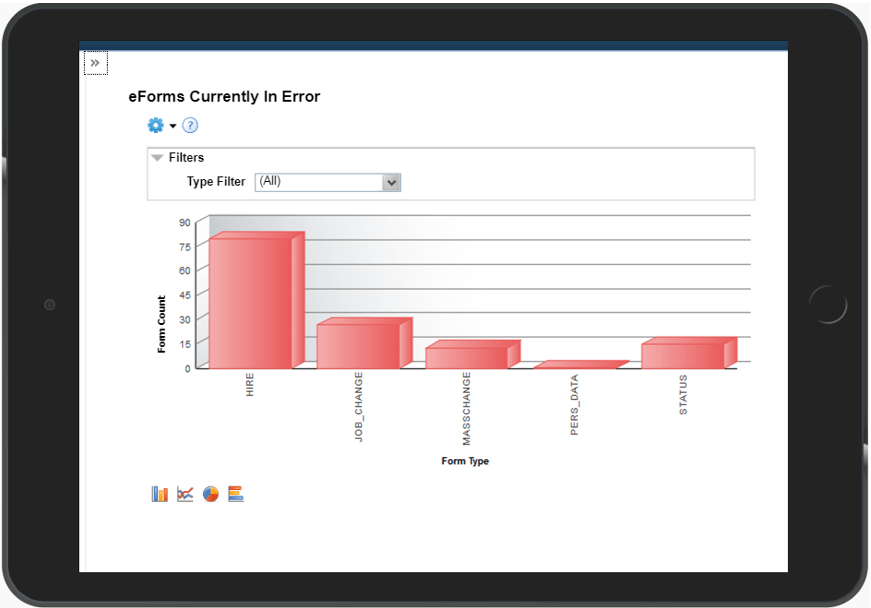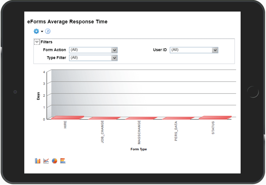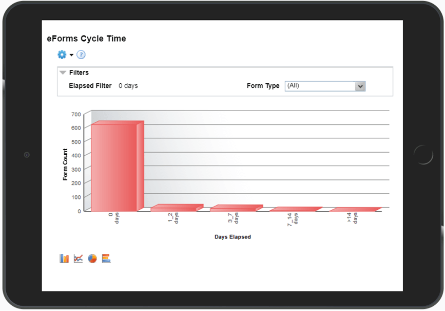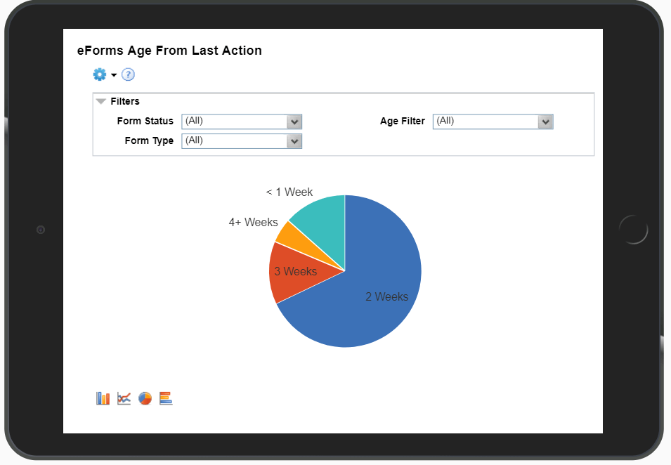 This chart shows pending forms grouped by the amount of time since the last action was taken. The report can be filtered by form status, form type, age filter and date range.